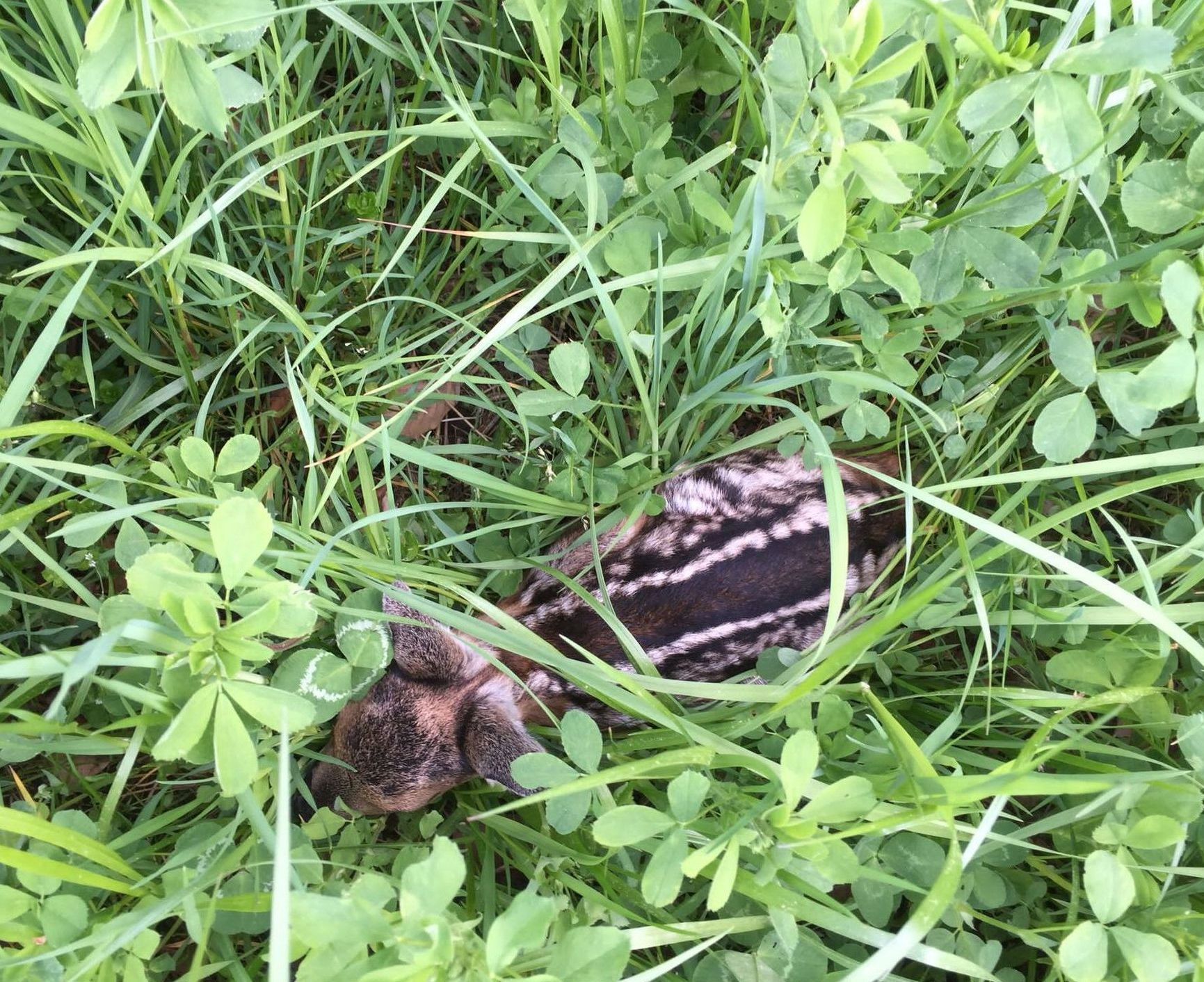 Kurz darauf mäht der Landwirt und wir lassen das Kitz nach der Mahd wieder frei.